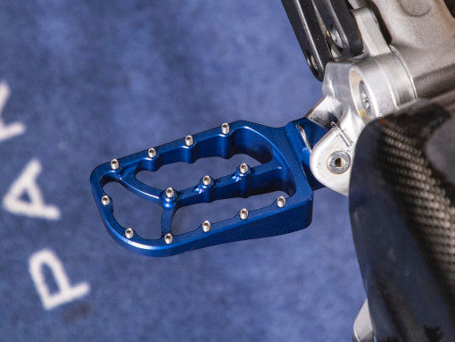 רגליות (פגים) ה-R/G הן באורך 105 מ"מ וברוחב 57 מ"מ. משמעות הדבר היא משטח גדול ב-20% מהמקורי, מסייע בתחושת ביטחון ואחיזת מגף טובה יותר בעת רכיבה במעמד. והפינים מונעים החלקה של המגף גם בשטח בוצי.